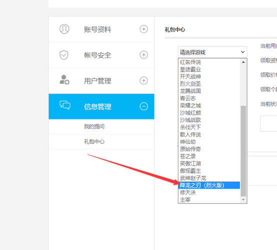 2.在禮包中心選擇游戲 降龍之刃·烈火版