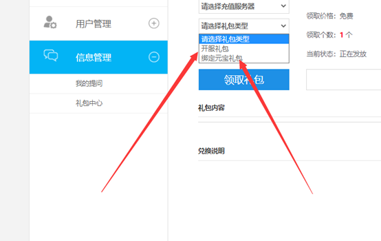 3.選擇區(qū)服,禮包類型。兩個禮包都要分別領(lǐng)取,非常重要。