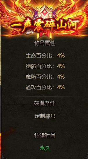第一名贈(zèng)送稱號(hào) : 一聲震碎山河 (全屬性百分之4)