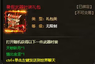 線下活動期間累計充值2000元,即可領(lǐng)取“暑假武器時裝禮包”時裝武器一件!